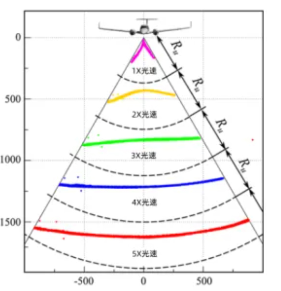 脉冲型激光雷达是基于飞行时间(ToF,Time of Flight)原理实现对目标距离测量,因此要想准确计算每个激光脉冲ToF值,必须要将每个回波信号与其对应的发射激光脉冲相关联。常规脉冲型激光雷达只能保证在单一脉冲时间间隔内接收到回波,才能准确计算出ToF值,这样一来,激光雷达的测距潜力就被光速大大限制了,这就是超高速测距与超远距离探测两个指标同时达到所产生的距离模糊问题,就像GNSS接收机距离解析中的“整周模糊度”。