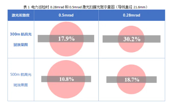 如上表所示,0.28mrad光束扫描电力线时,性能远超0.5mrad光束,导线可探测能量占比可达0.5mrad时的近2倍,测量性能大大提升!