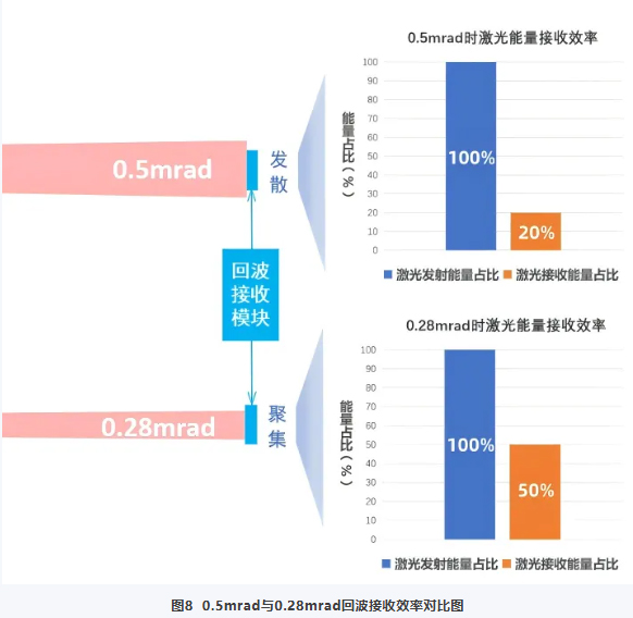 在激光雷达的实际测量作业中,当目标面积完全小于激光的光斑面积时,其所能被探测的最远距离将锐减;同时,当同一个光斑同时打在多个目标时,会导致光斑能量分散在不同目标上,从而形成多回波,同样也会使得这些目标所能被探测的最远距离锐减。这样一来,如何缩小激光发散度这一指标,就显得对激光雷达的性能提高尤其重要!
